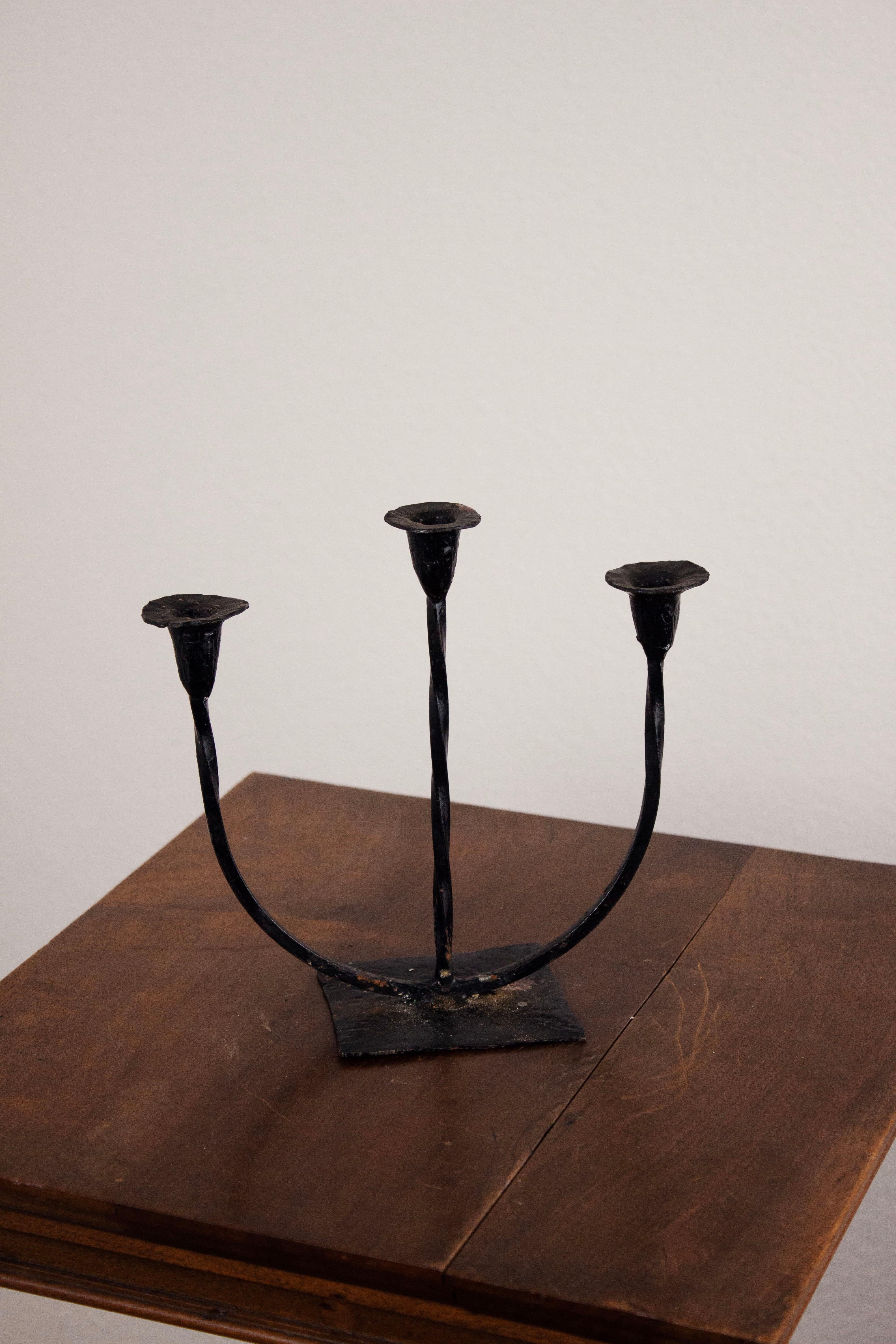 Sculptural Vintage 3-Arm Wrought Iron Candelabra, Handcrafted