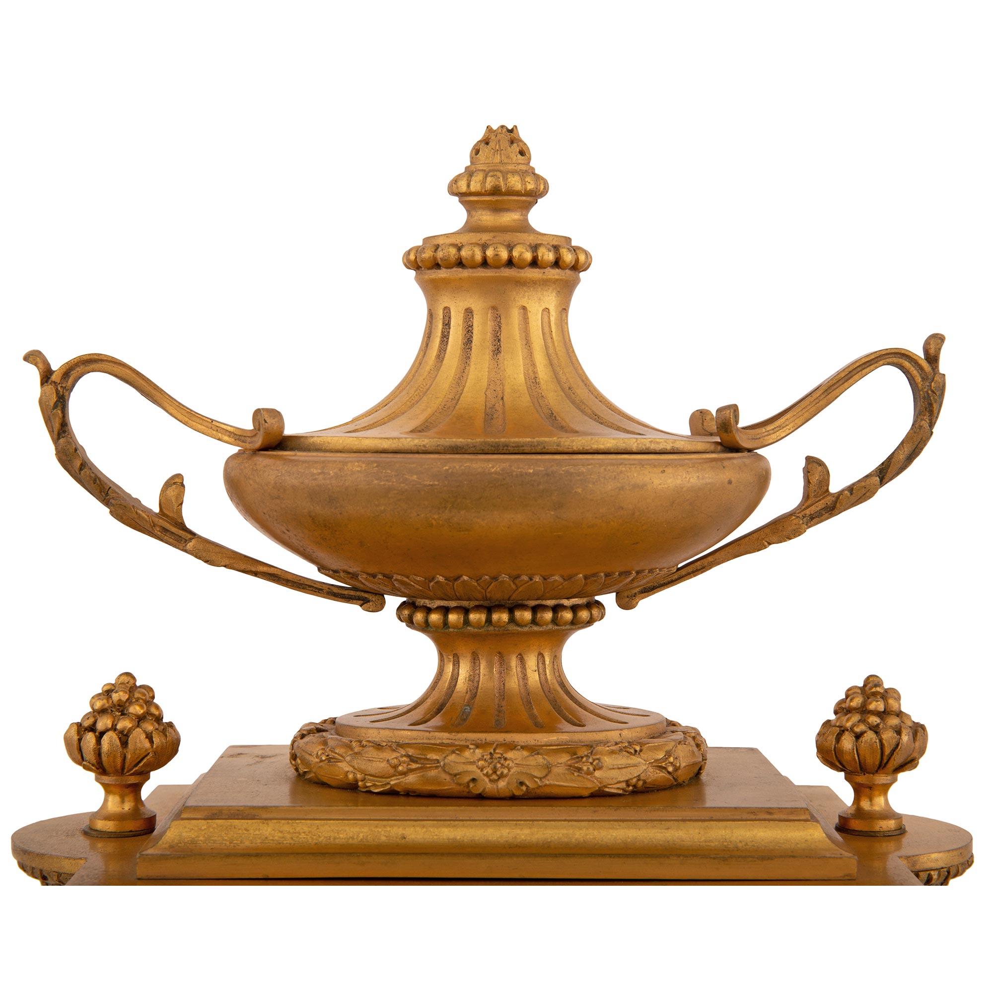 An extremely high quality French mid 19th century Louis XVI st. signed 'Lepaute, Paris' ormolu clock. The clock with a superb chasing throughout has all of its original gilt. Raised ...