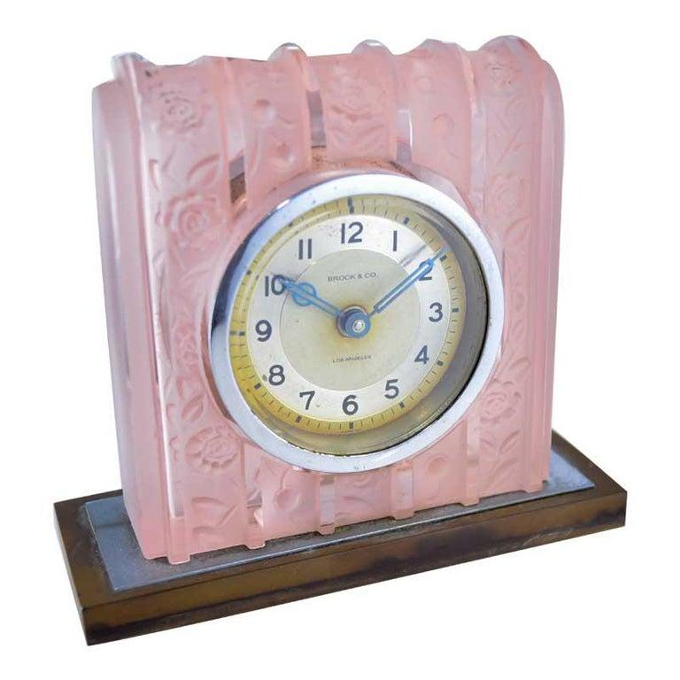 Brock & Co. French Glass Art Deco Boudoir Clock from 1930's