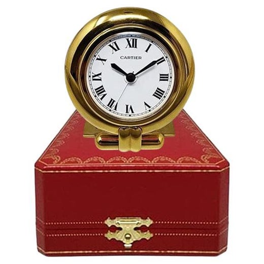 Cartier Paris Accordion Clock with Date and White Roman Numeral Dial Circa 1980