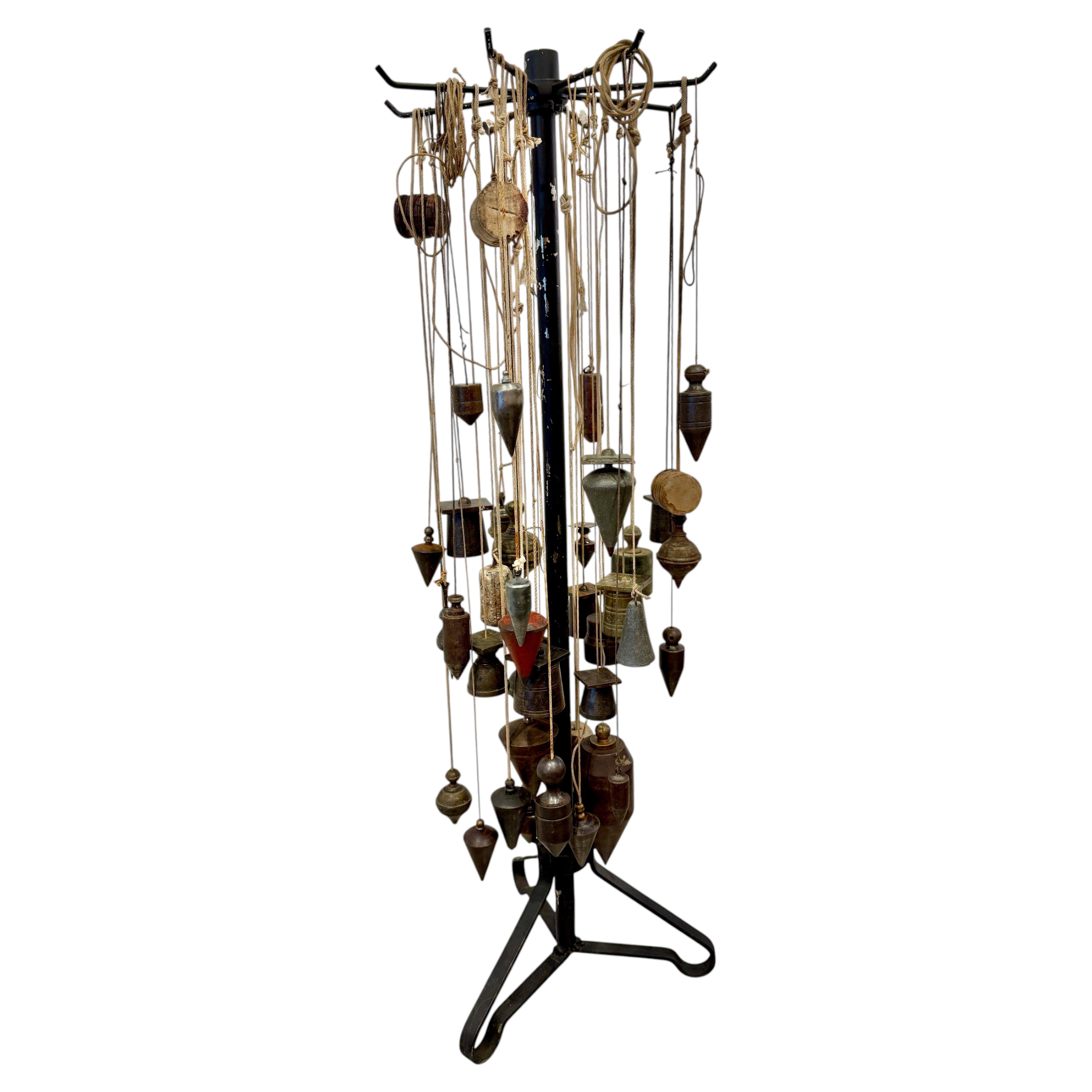 The Sacred Clothesline This piece was inspired by Victor’s few pieces of clothing hanging on the cloth lines waiting to dry after hand-washing them at the end of each day during his journey on the Camino. These Holy Cards were collected from top antique and book dealers in different Cities on and around the Camino. At first, he was only trying to collect art pieces that he could carry. The leather cord wrapping around the Skein represents the never-ending Camino of life. The different colors are a representation of the different paths of any Camino. The Holy Cards represent all the everyday Saints who come into our journey to teach life learning lessons. The piece comprised of: Early 19th Century extremely fine walnut, rosewood and satinwood Expandable Spinning Skein with white bone finial. A very fine and well-preserved collection of 17th and 18th Century European Holy Cards. Mid-century (1960s) solid walnut wood and black laminate pedestal.