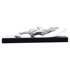 This small sculpture, crafted by hand in nickel-plated bronze, depicts a rabbit with ears bowed in a gesture of meekness, its form affixed atop a sturdy base of matching material. In this case, the signature of artist...