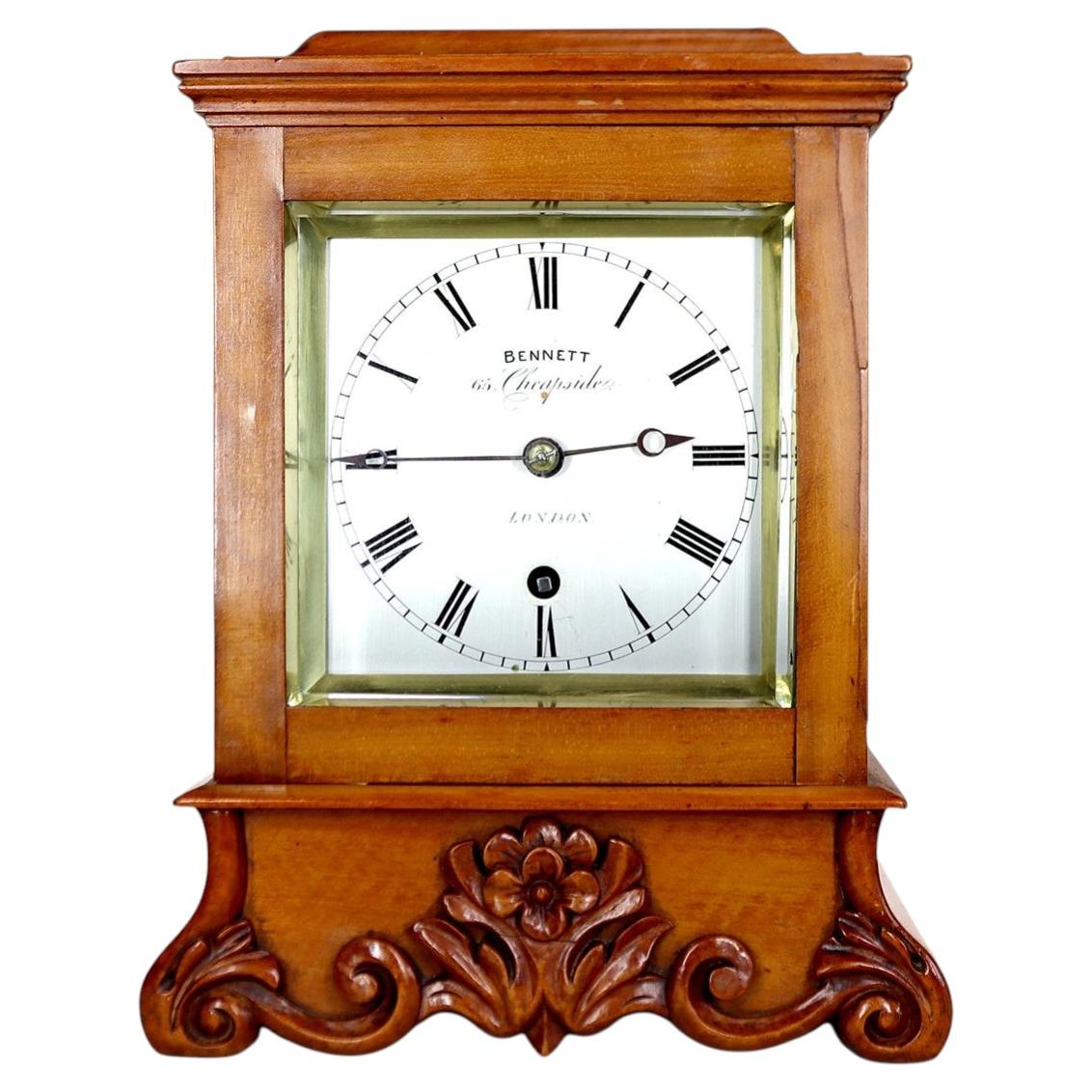 A fine antique Georgian Regency period tall case 8 day inlaid mahogany grandfather clock with a rocking figure of Old Father Time, by Andrew Rich of Bridgwater Somerset, circa 1820. The clock is made of the finest figured flame mahogany & inlaid with satinwood stringing, the clock hood with twin arched 'swan's neck' pediment with brass rosettes & a central brass urn shaped finial. The hood door is flanked by a pair of turned columns with gilt brass capitals & bases, the door enclosing a painted dial with gilding & floral spandrel panels. The clock having an unsul feature of a winged Old Father Time, holding his scythe he rocks backwards & forwards in unison with the pendulum. The dial with black Roman numerals and having a seconds dial and also a calendar dial, the clock is signed to the center "Rich Bridgwater" (a prosperous historic coastal town & port in the Somerset area of the Southwest of England). The trunk of the case with carved 'ropetwist' pilasters, the door & base inlaid with satinwood stringing, the clock is raised on bracket feet. The clock has an eight day mechanism & strikes the hours on a mellow sounding bell, the clock chime can be silenced by not winding the chime arbor, original pendulum & weights, winding key is present. The clock is in excellent antique condition & has just been professionally cleaned and overhauled by a professional clocksmith, it keeps very good time, this elegant antique tall case clock...