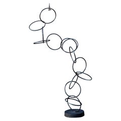 This character filled A Bamana Wrought Iron Equestrian Sculpture originates from Mali during the latter half of the 20th Century. Features a rectilinear black base on which four curv...