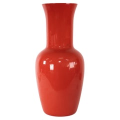 The oversized vase of traditional meiping form, with a splayed foot supporting a baluster shaped body with high shoulders, short, narrow neck, and rolled mouth rim.