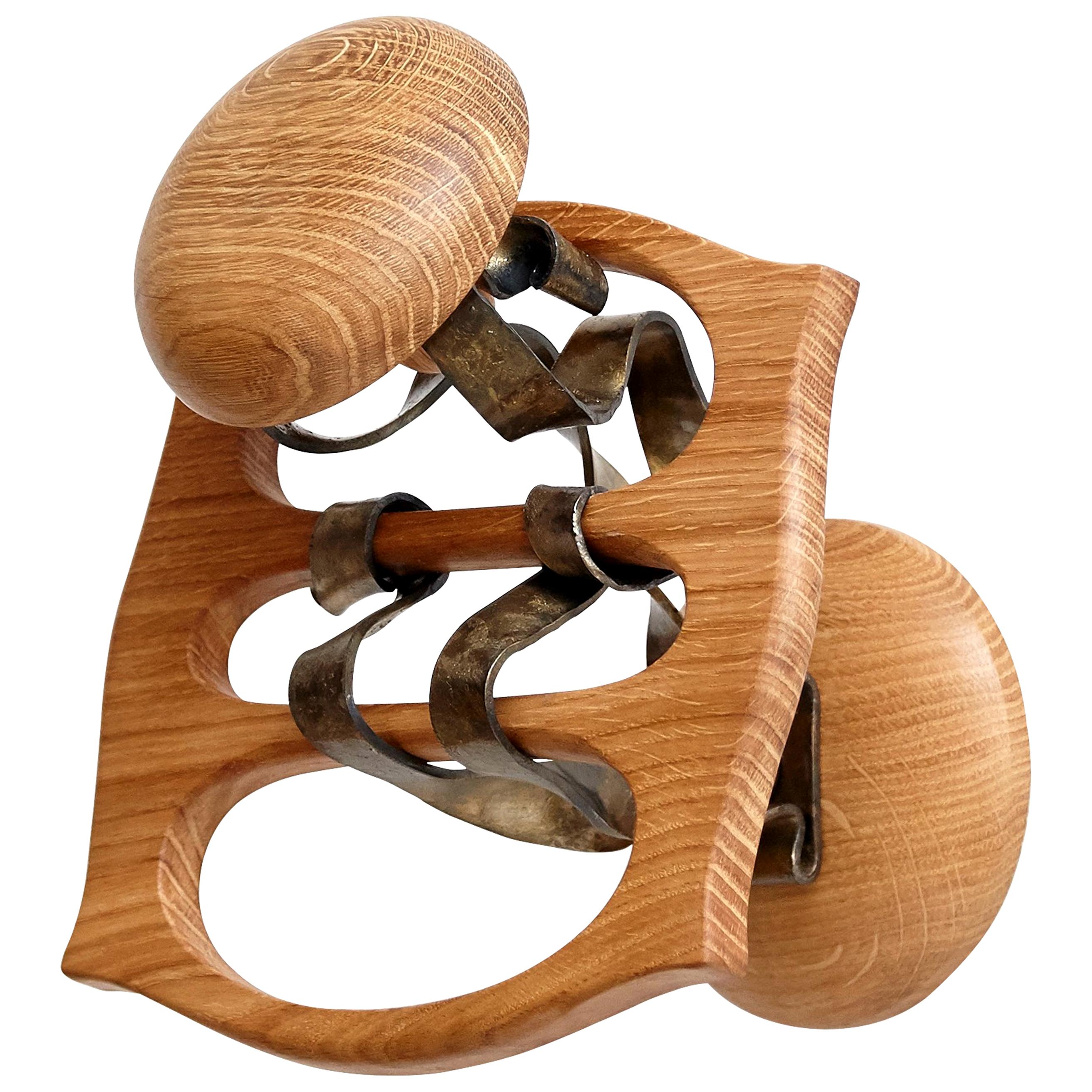 Abstract Wood Sculpture, Brown and Gold color Base France 1970