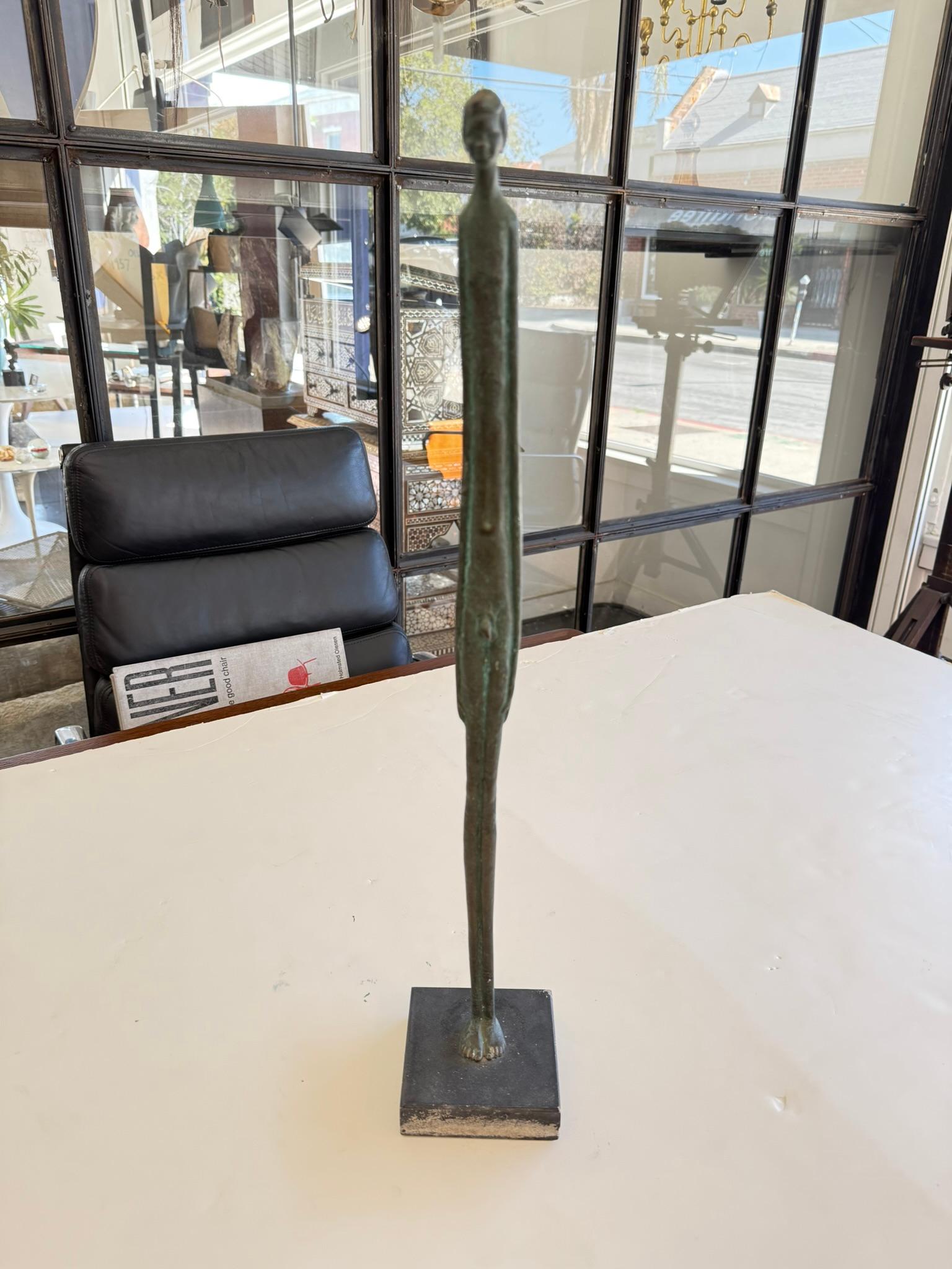 "Ombra Della Serra" (Shadow of the Evening), Grand Tour souvenir after the 3rd Century BC. Etruscan bronze, hand-crafted in Italy, 1950s. The original is in the collection of the Museo Etrusco Geernacci, Bolterra, and was found in the first excavations of the Volterran Necropolis around 1728. The sculpture's form inspired the name it was given reflecting the long shadows cast in the evening as night falls. It is believed that the form of this iconic sculpture inspired the 20th Century works of Diego Giacometti.