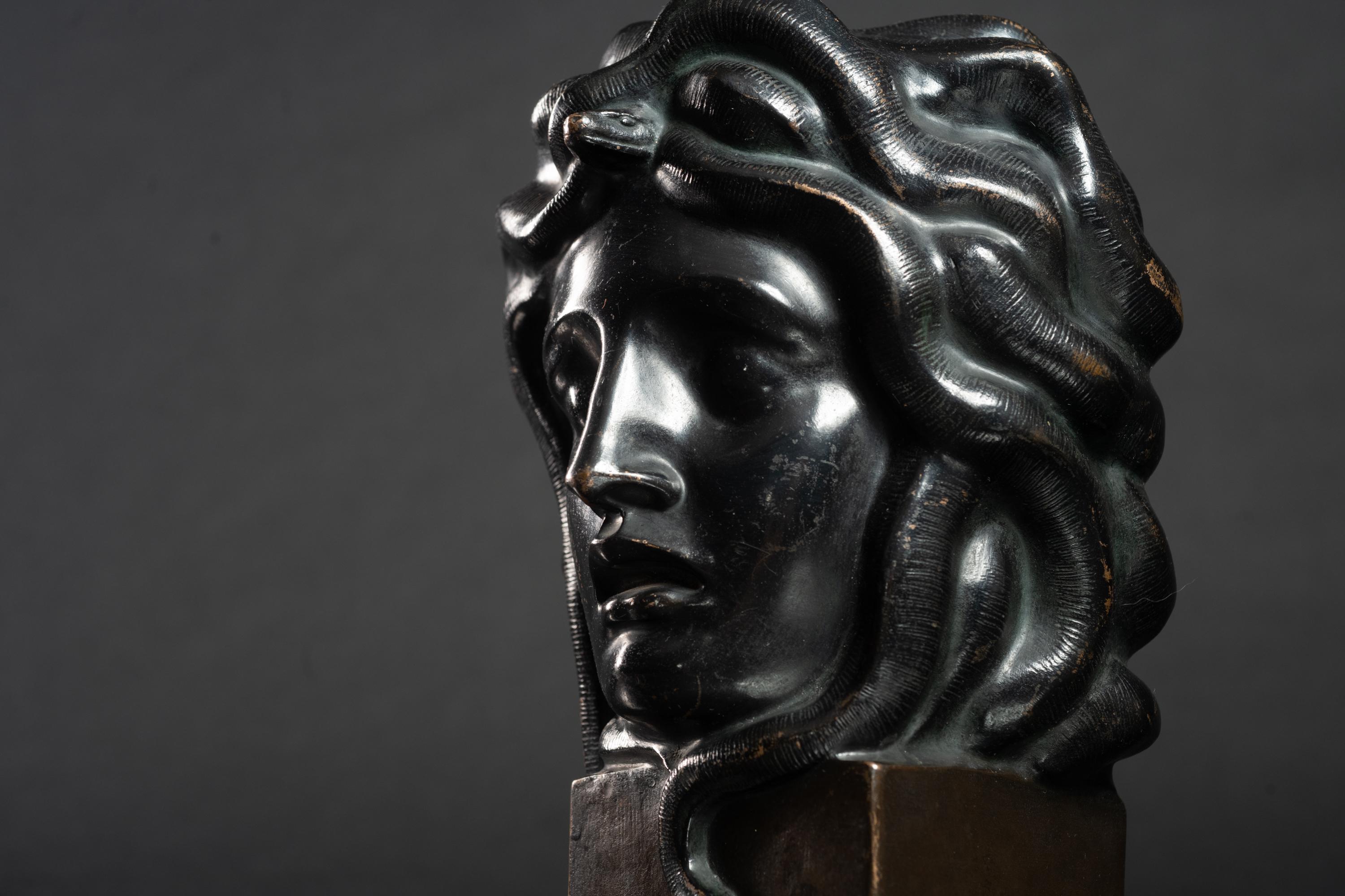 "Head of Medusa" Austrian Art Nouveau Bronze Sculpture by Josef Müllner