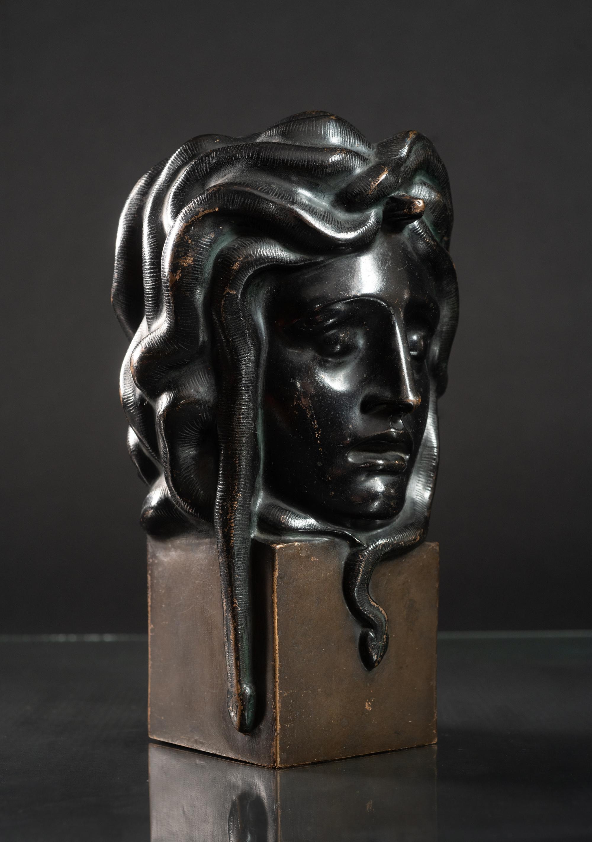 Andre Arbus (1903-1969) & Vadim Androusov (1895-1975) Gorgon head in patinated bronze.