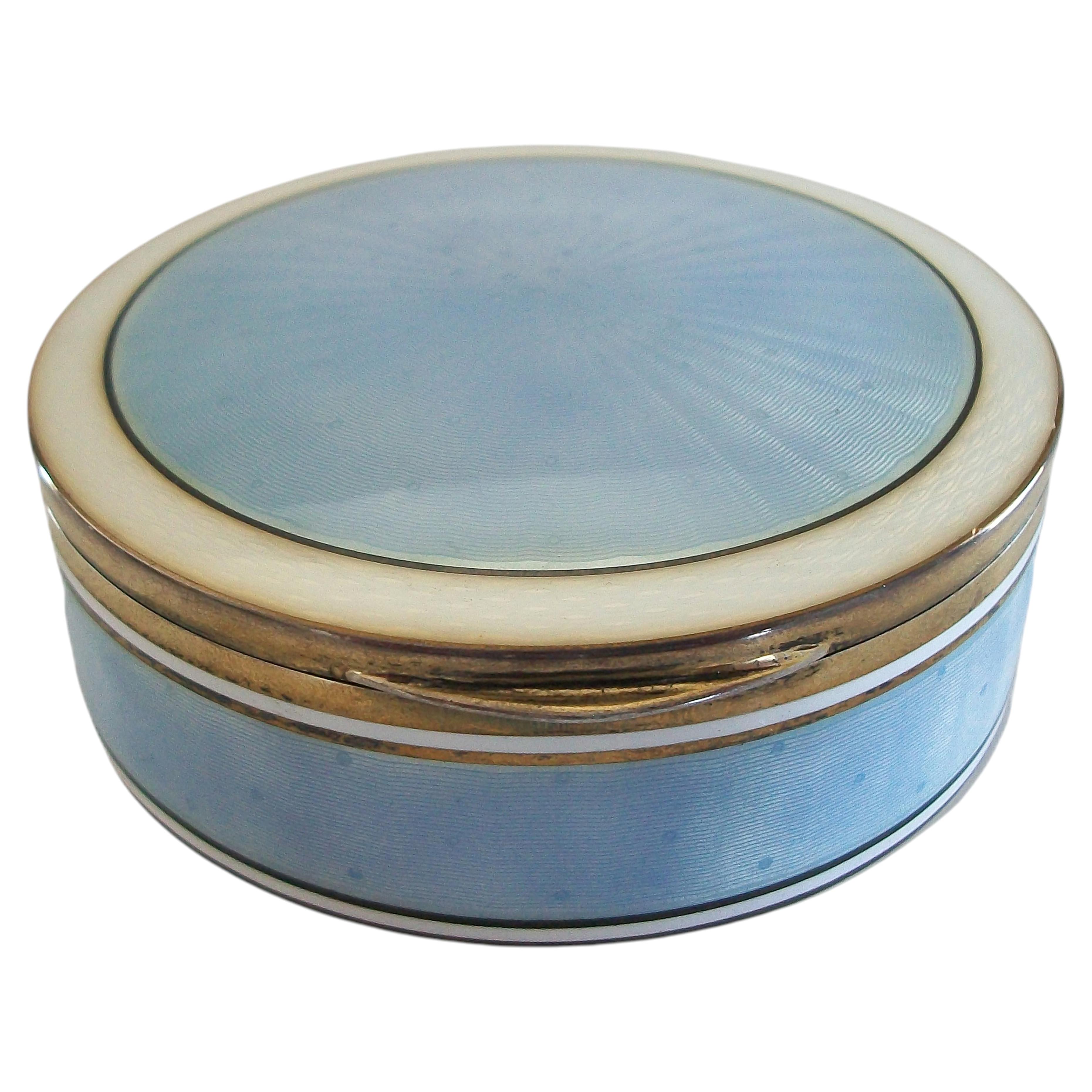 An exquisite Antique Qadjar Oriental silver box, delicately hand-engraved with detailed figural and floral scenes, evoking the opulence of West Asian (Persiann) artistry. Crafted in the 19th century, this circular box features a continuous frieze of courtly musicians and noble figures within arabesque cartouches, surrounded by intricate foliate borders that showcase the exceptional skill of traditional silversmiths.
