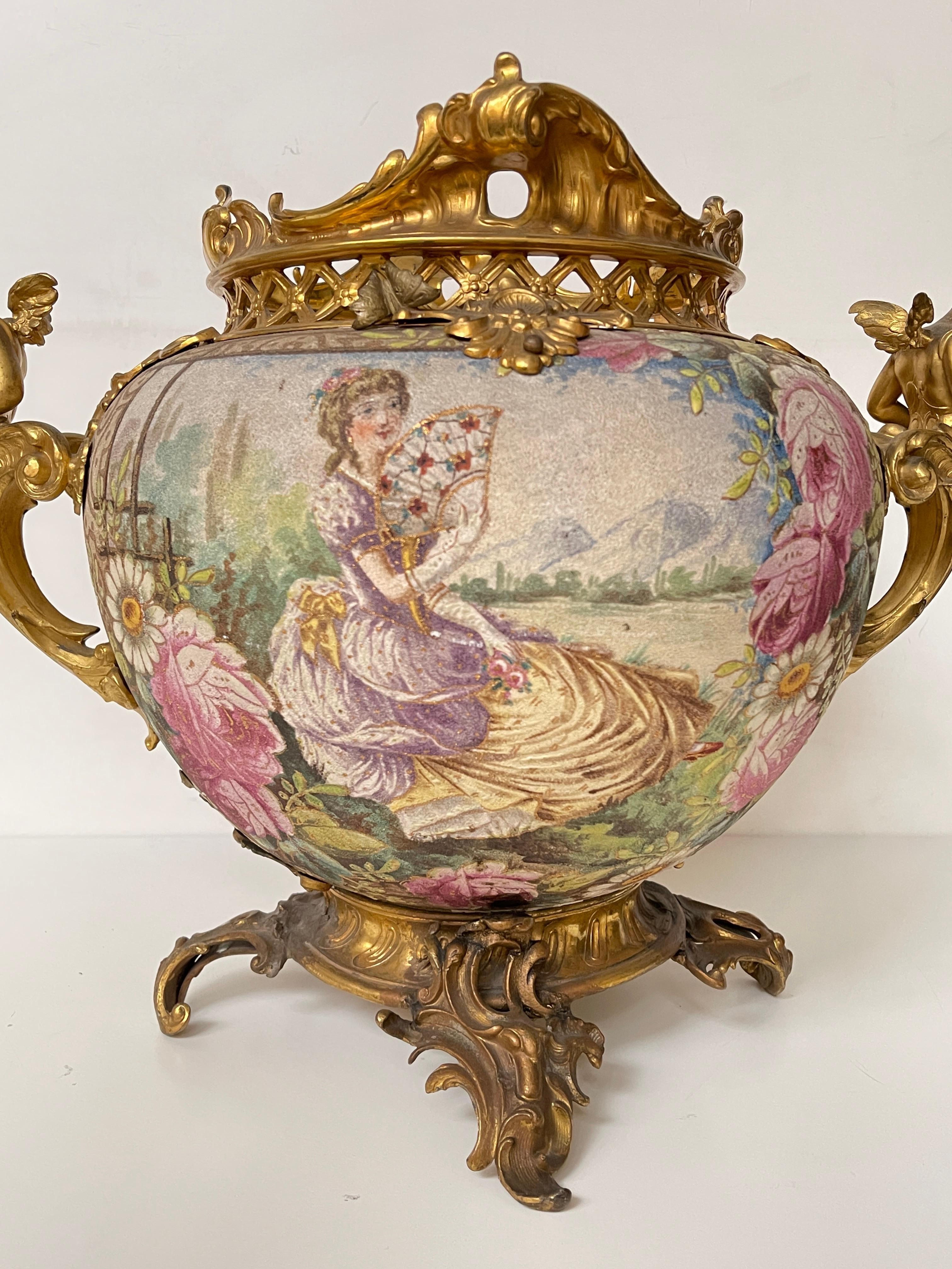 Hand-painted French porcelain perfume burner vase, made in the early 20th century