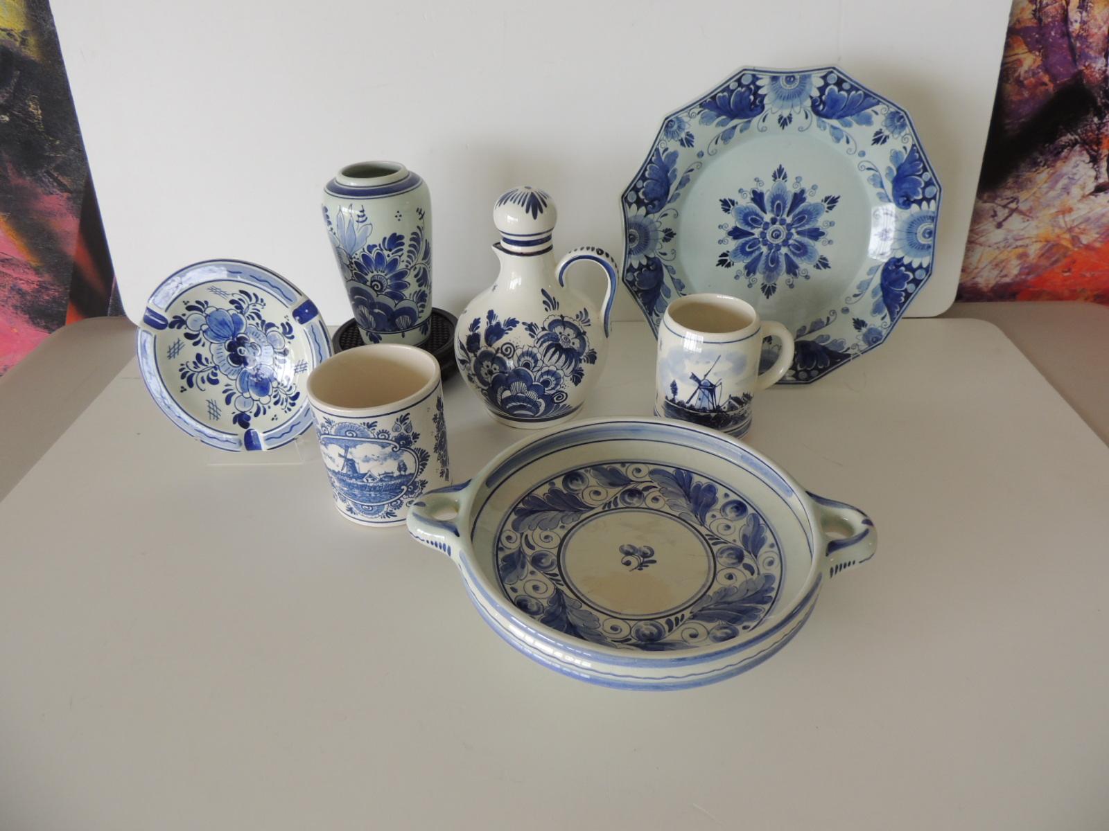 Blue and White Collection of Delftware Pottery Set of '7'