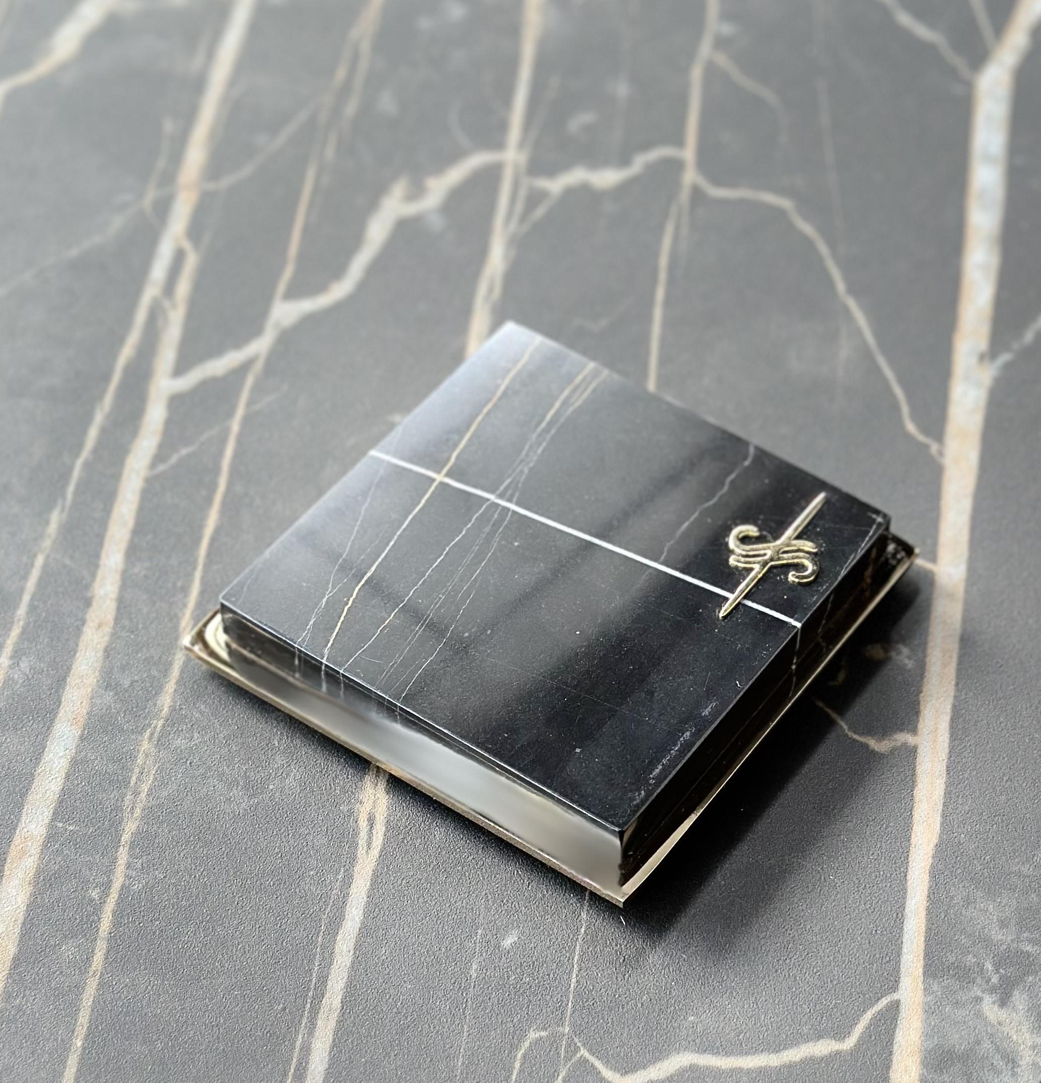 Set of 4 coasters in Marquina marble with brushed brass inlay.