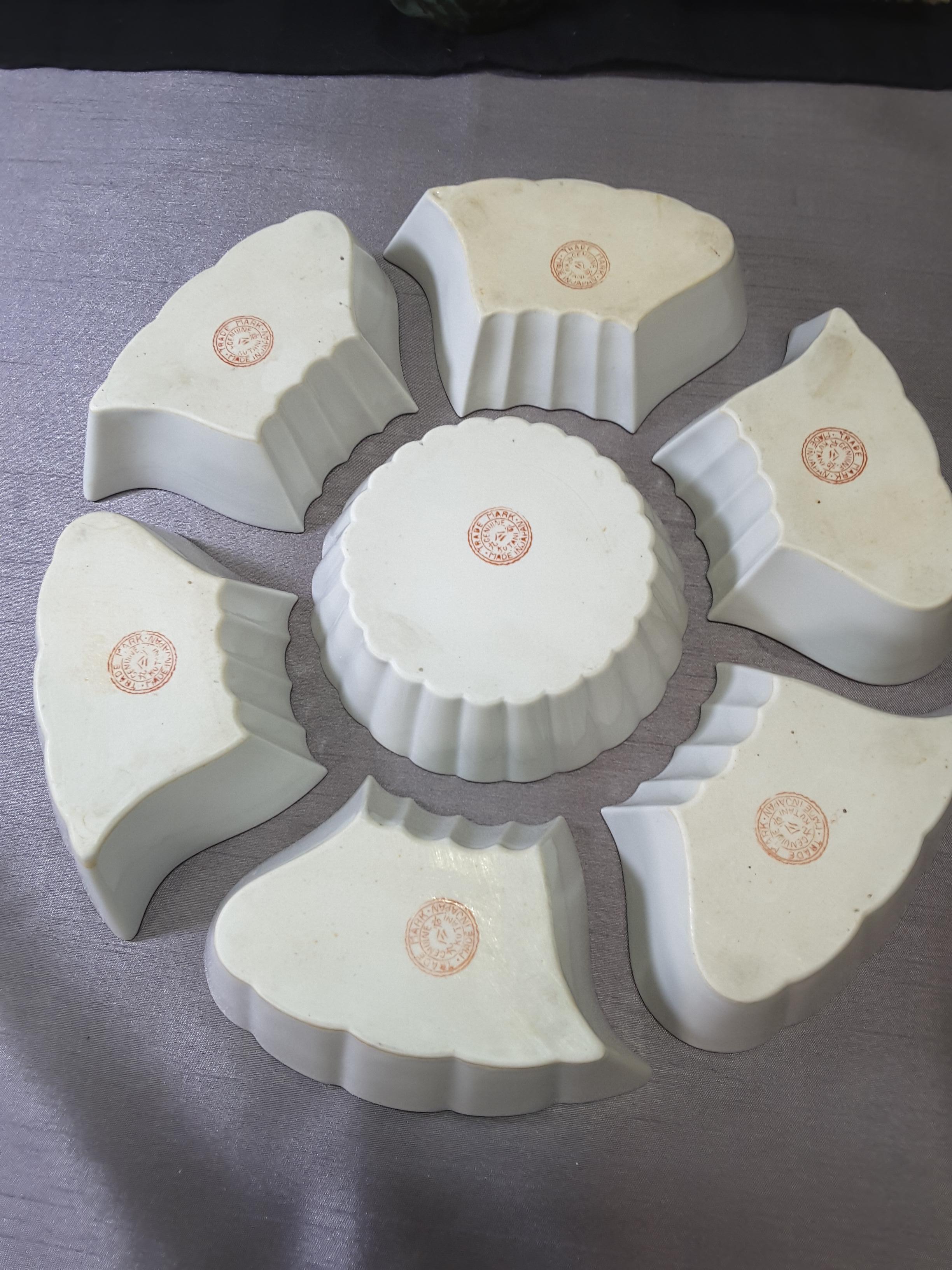 Lot Of Six Rare Japanese Kutani Porcelain Ramekins Dessert Dishes & Saucers