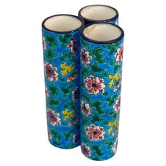 Delphin MASSIER Majolica Three Wild Roses Flower Vase, Vallauris, Late 19th C.