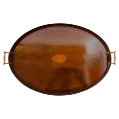 Vintage English Oval Edwardian Marquetry Butler's Tray 20th Century