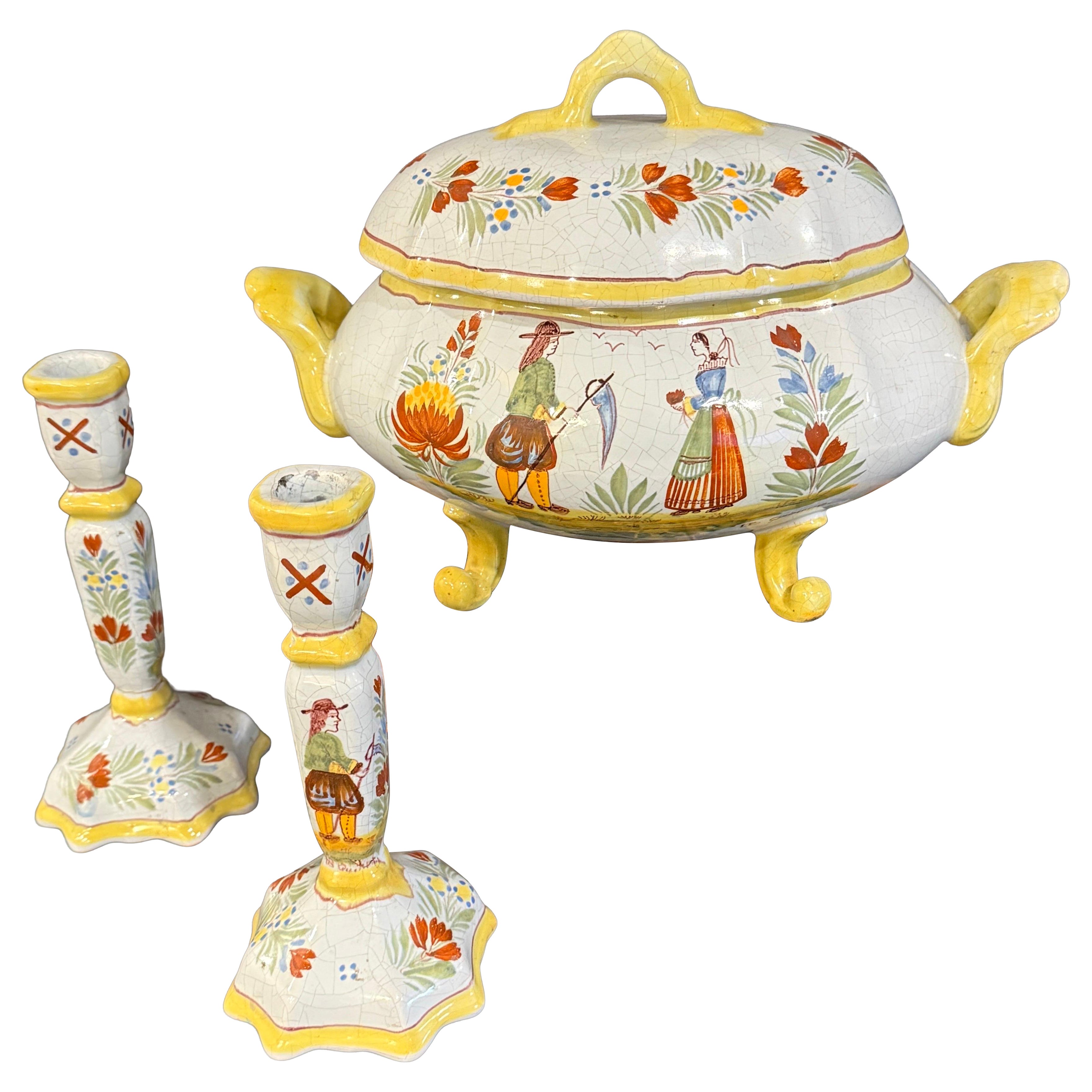 19th Century German Louis XVI Antique Painted Serveware, Ceramics, Silver and Glass