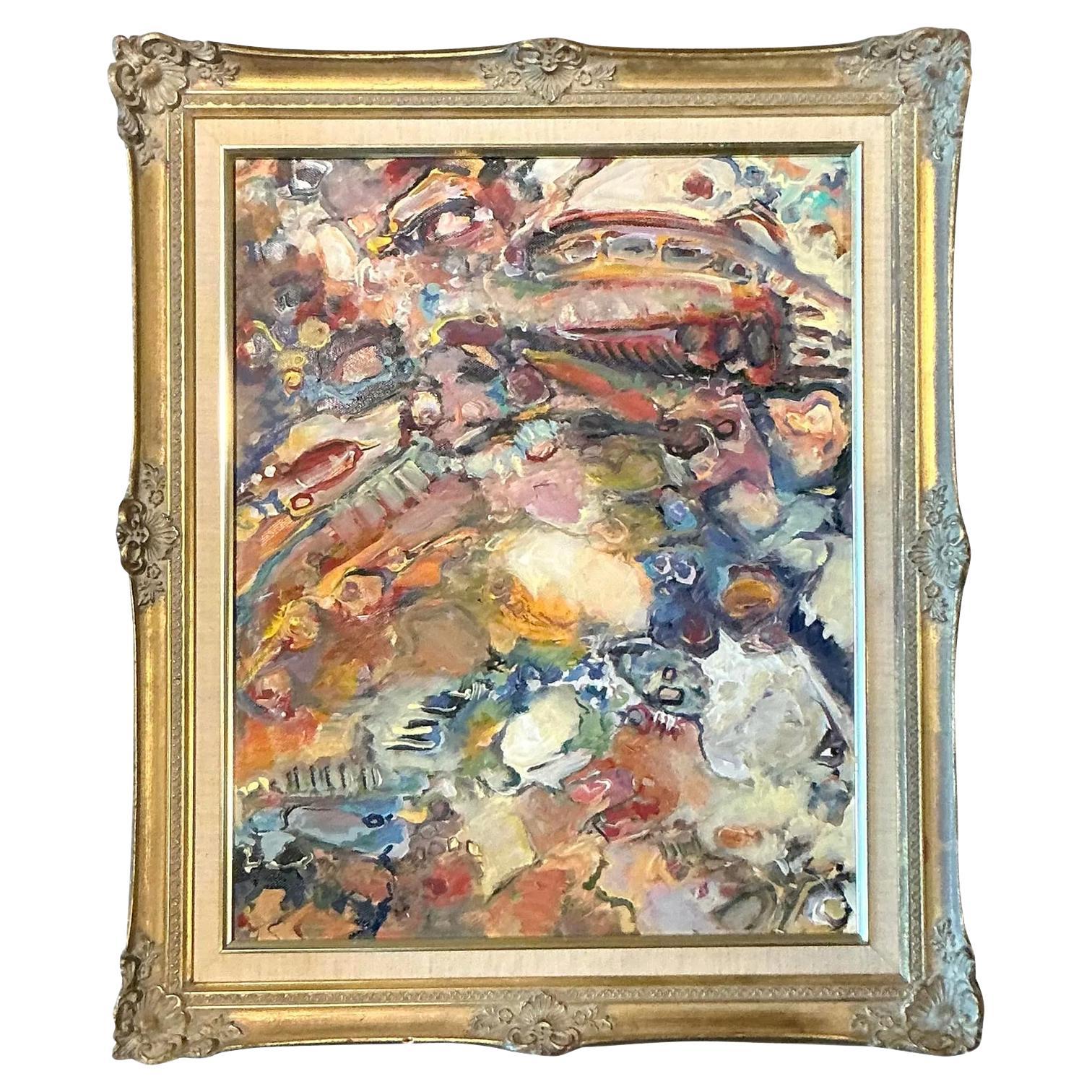 1980s American Vintage Gold Leaf Folk Art