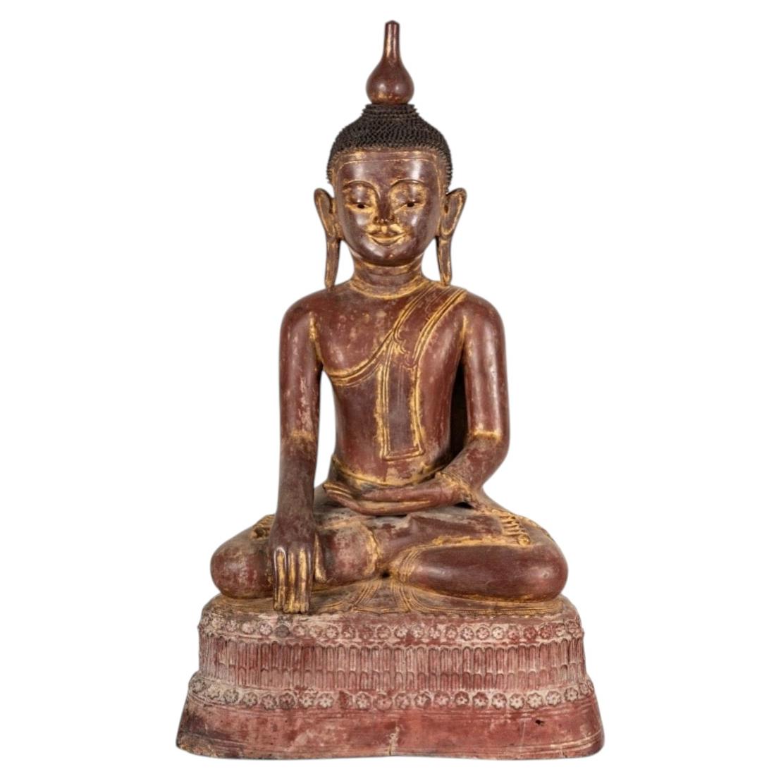 This buddha is a hand-carved from wood and originates from Burma, modern day Myanmar. It once featured an elaborate lacquer finish, however much of this has worn away over the decade...