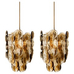 Elegant Murano Poliedri Chandelier-Carlo Scarpa design-clear and smoked glasses