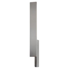 Pair of wall sconces manufactured by Ferro Art featuring a geometric iron structure. Backplates consist of vertical solid bars arranged in a stepped diamond silhouette with a silver ...