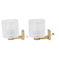 French Sconces Wall Lamps with Brass & Clear Holophane Glass