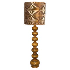 Sculptural French Art Deco Tall Table Lamp in Turned Oak and Ivory Shade, 1920s