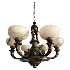 Rare and very stylish, good condition and warm color alabaster 1-light pendant of great quality and design. This rare Art Deco fixture from the heydays of the European Art Deco era ...