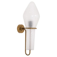 Cast Iron wall light White opaline glass, brass top. Height of wall piece up to the glass: 36 cm / 14.17 inches Diameter cast iron wall piece: 10.5 cm / 4 inches 2 holes to secure...