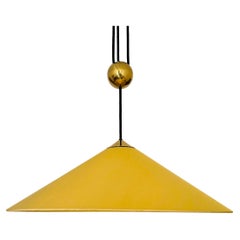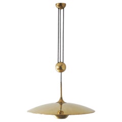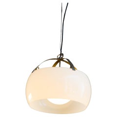 Adolf Loos Pendant Lamp for VeArt Opal Glass Gold Brass Art Deco, circa 1970