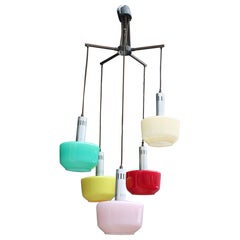 SONOVER French Art Deco Pendant Chandelier with Frosted Glass, 1920s