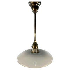 Large 16" Antique Moonstone Opaline Glass Plafonnier Light Pendant, C.1920