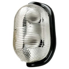 French Cast Iron Art Deco Clear Holophane Glass Wall Lights