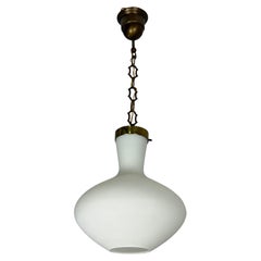 1950s Italian Brass Pendant Lamp with Opaline Glass Spheres