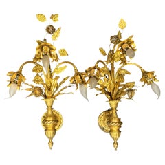 Mid-20th Century Cast Iron Wall Lights with White Opaline Glass Shade