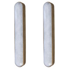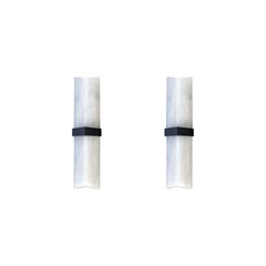 Pair of Streamline Moderne 1930s Art Deco Milk Glass & Chrome Bathroom Wall Sconces ** Sold as a pair A superb and increasingly scarce pair of Streamline Moderne Art Deco bathroom ...