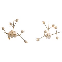 Floral wall light Bright Boho Bianci Glamour Tole hand paint Metal , Italy 1960s