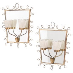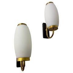 Pair of Italian Brass and Opaline Glass Wall Sconces, 1950s