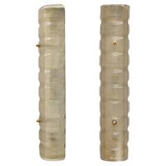 Hollywood Regency style Murano glass sconces in the style of Carl Fagerlund, Austria, 1970s. Each wall light is composed of a semi-transparent textured Murano glass diffuser in the s...