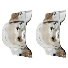Fantastic pair of vintage Murano wall sconce made by 10 blue glass petals (transparent crystal, smooth outside, with crystal powder and then rough inside) in a chrome frame. Period: ...