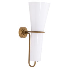 1950s Italian Mid-Century Modern Wall Sconce in Brass and Opaline Glass