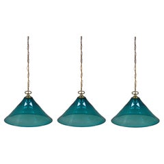 Antique Holophane Prismatic Glass Church Kitchen Island Brass Pendant Light