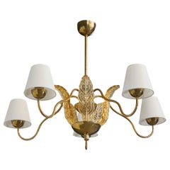 Swedish Designer, Chandelier, Brass, Fabric, Sweden, 1940s