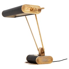 This table lamp originates from France and dates to the late 1930s. It features a geometric wooden base with a distinctly architectural character typical of the period. The oak base...