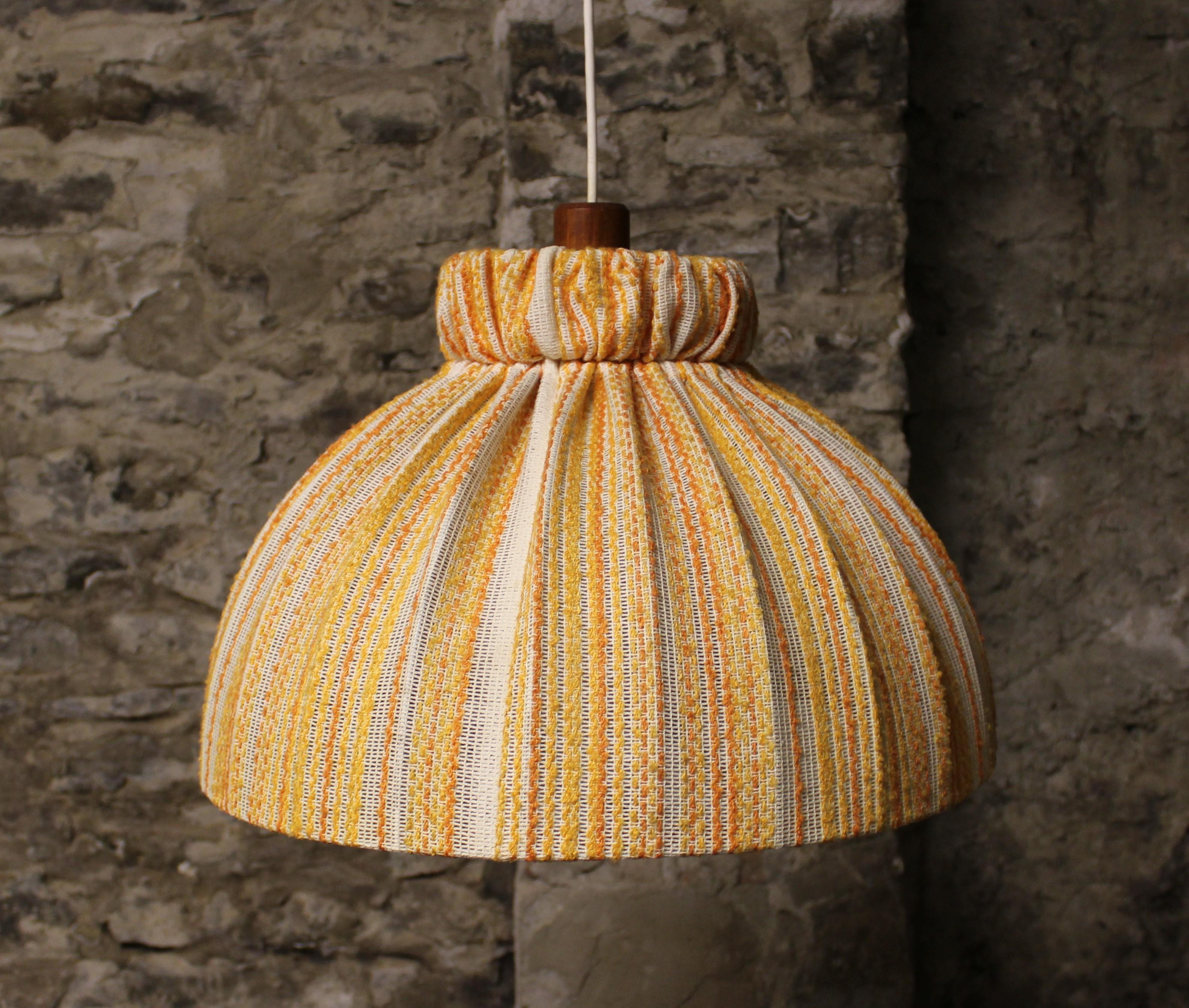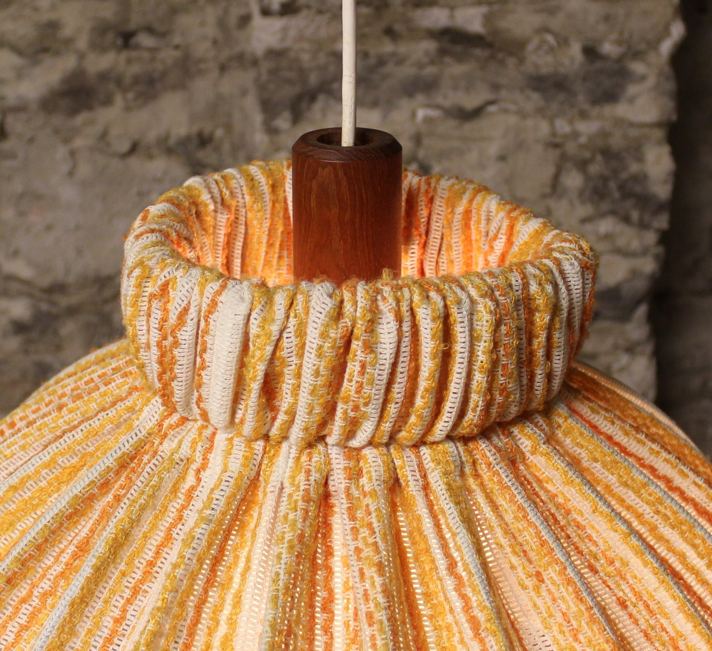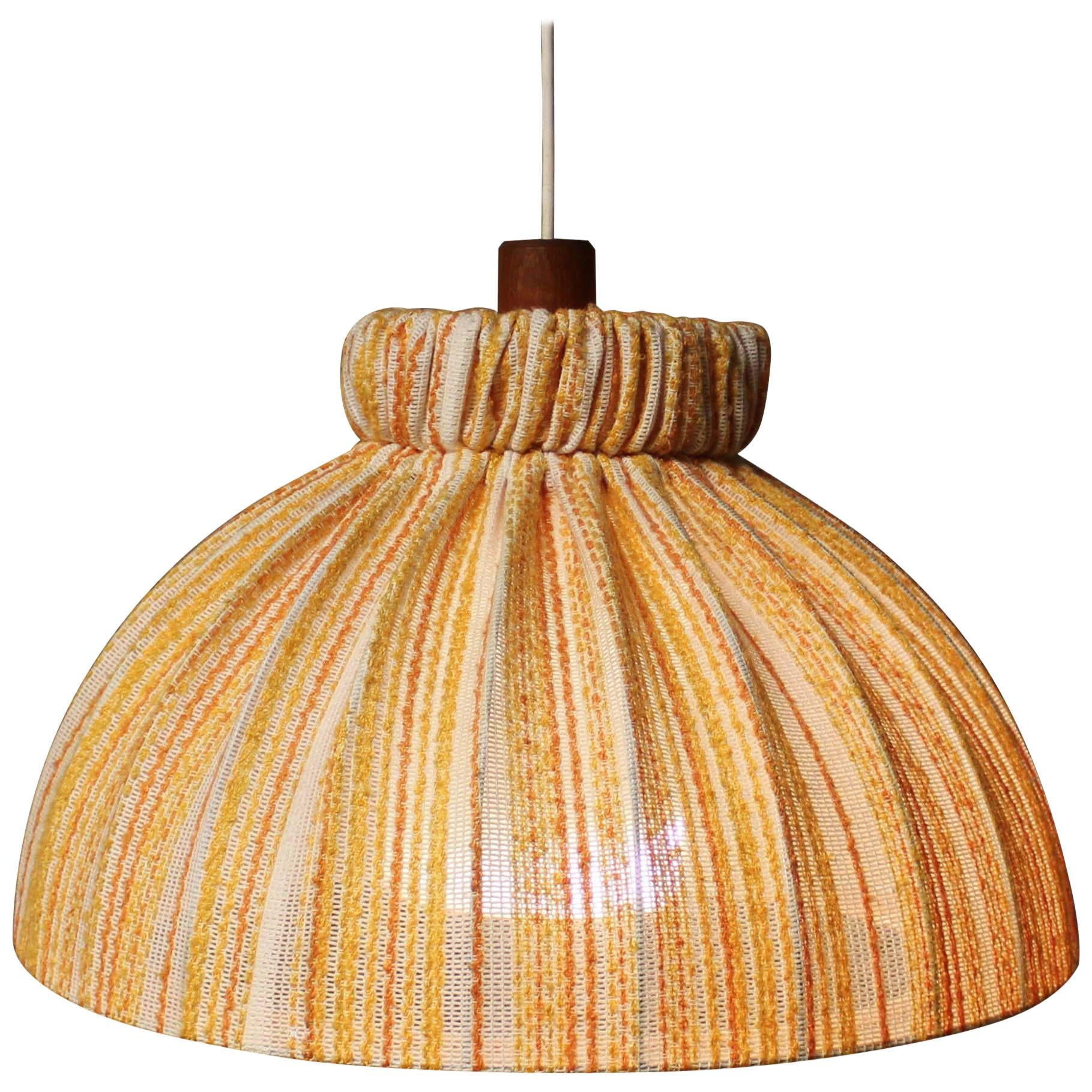 Midcentury Teak and Fabric Shade Hanging Lamp by Temde, circa 1960