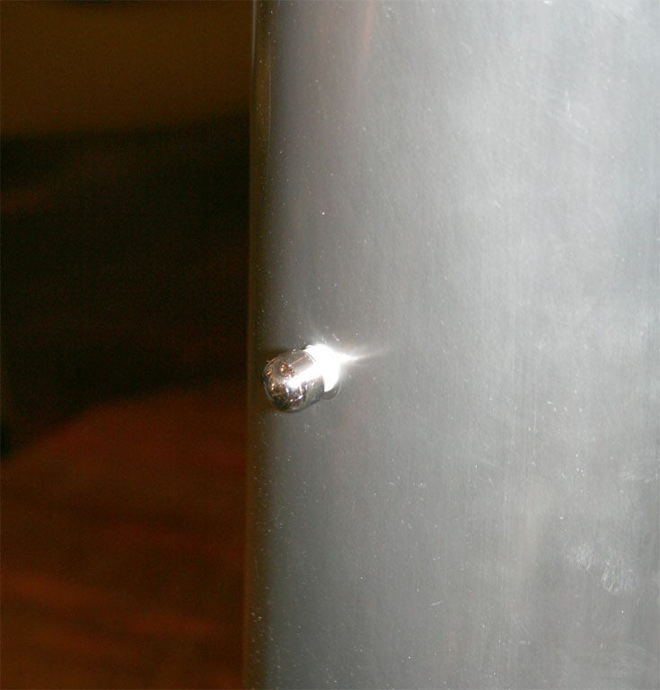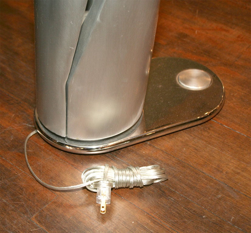 Gigi Capriolo for Complemento Idea, floor or table lamp ‘Glob’, polished and brushed stainless steel, Italy, circa 1972