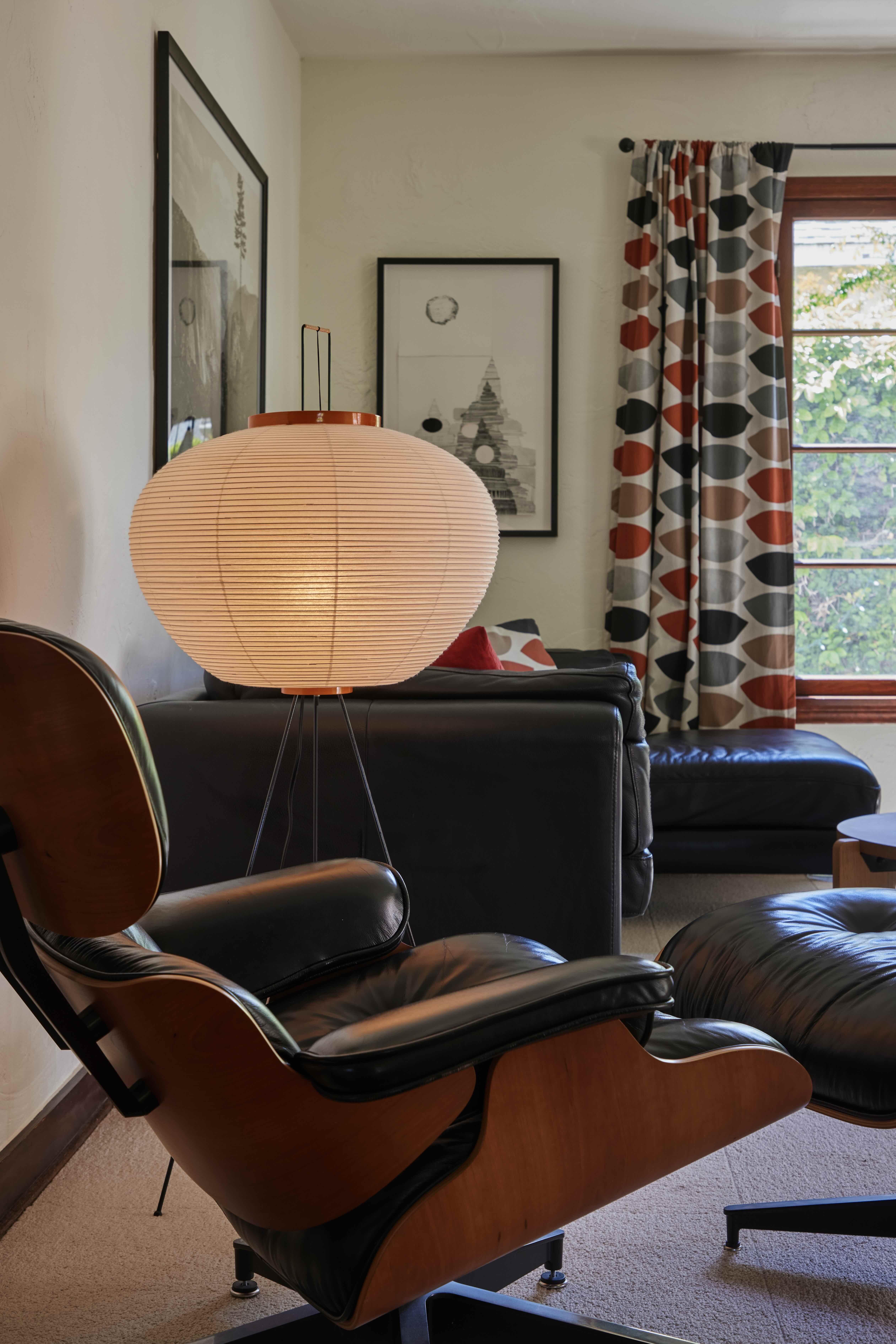 The artist met with Gifu’s mayor, who explained that he was seeking a way to reinvigorate his city’s lantern industry. Aiming to bring the chochin’s traditional design into the 20th century, Noguchi made multiple prototypes with an incandescent bulb in place of a candle. He named the updated lantern Akari, which means both illumination and lightness in Japanese. Noguchi debuted his Akari light sculpture at an exhibition of his work at the Museum of Modern Art in Kamakura in 1952. It caught on immediately, not only as a piece of art but also as a functional design.