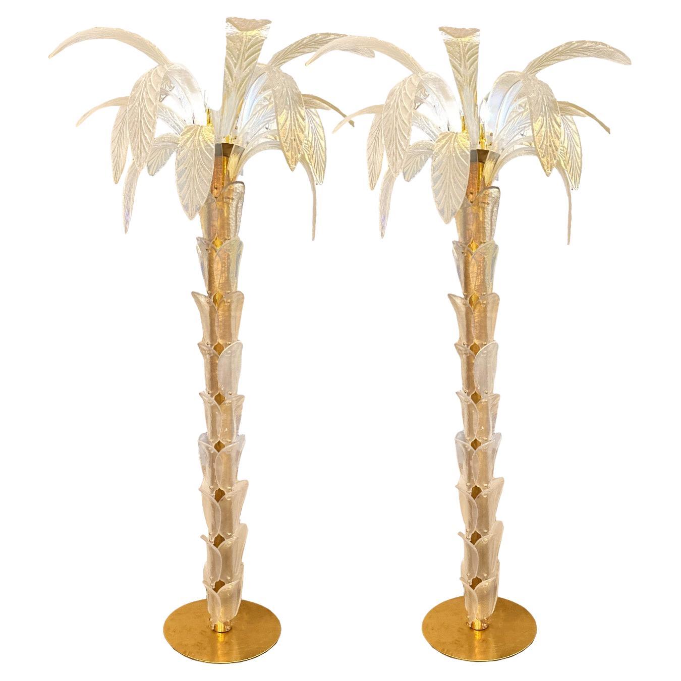 Pair of Murano Glass Palm Torchieres