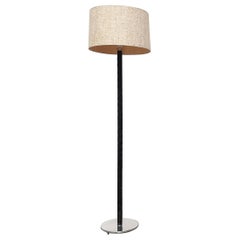 A rare Lisa Johansson-Papé table lamp model 46-186. The lamp consists of a wooden base covered in dark brown leather with a brass shaft attached on the top. This particular example ...