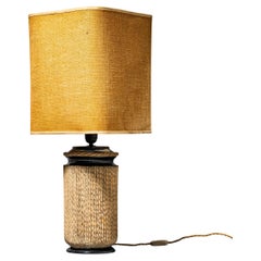 Swedish Modern Alabaster Ceiling Pendant with Rope & Brass Details, 1940s